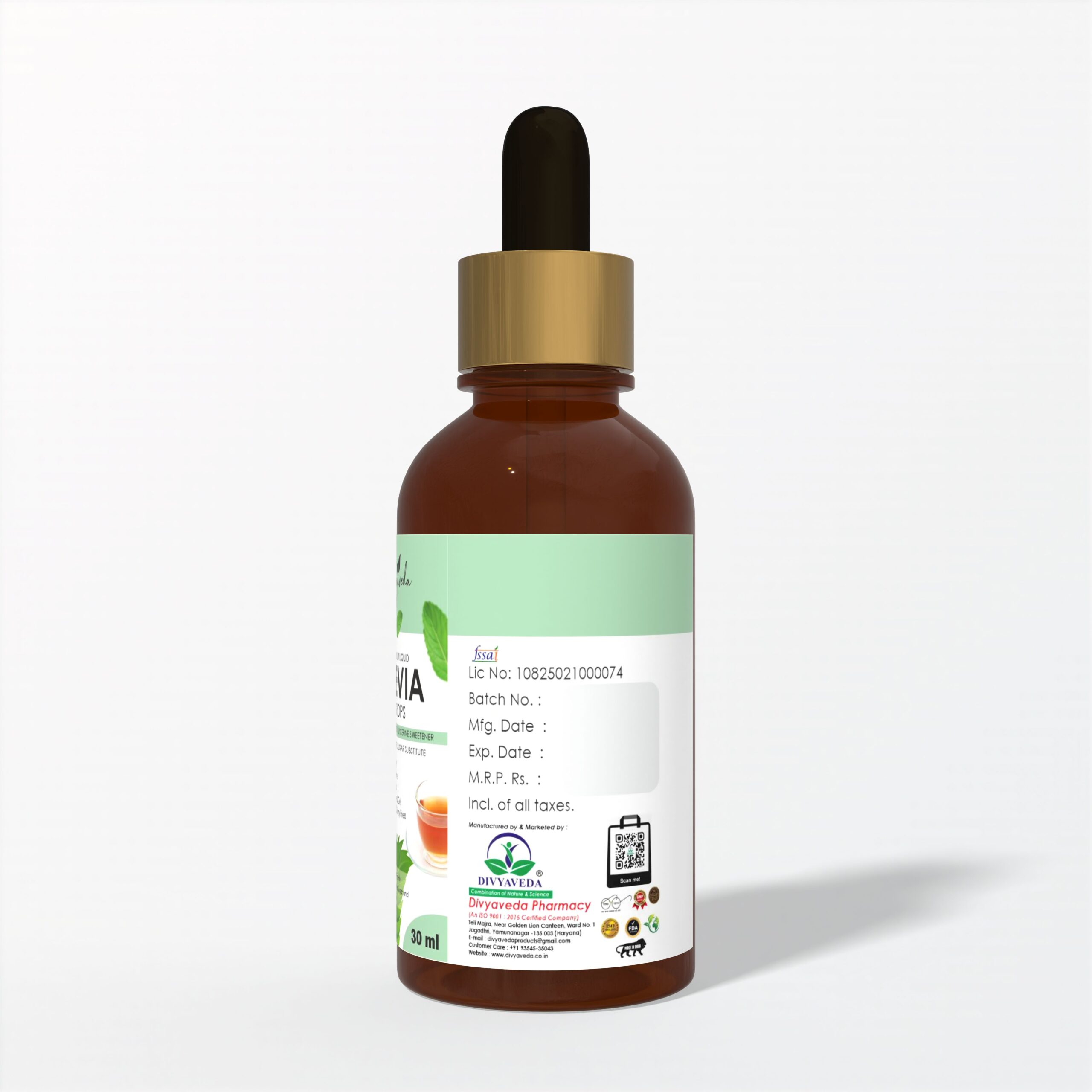 Divyaveda Stevia Leaf Drops – Natural Sugar Substitute for Diabetics & Weight Watchers – Zero Calories